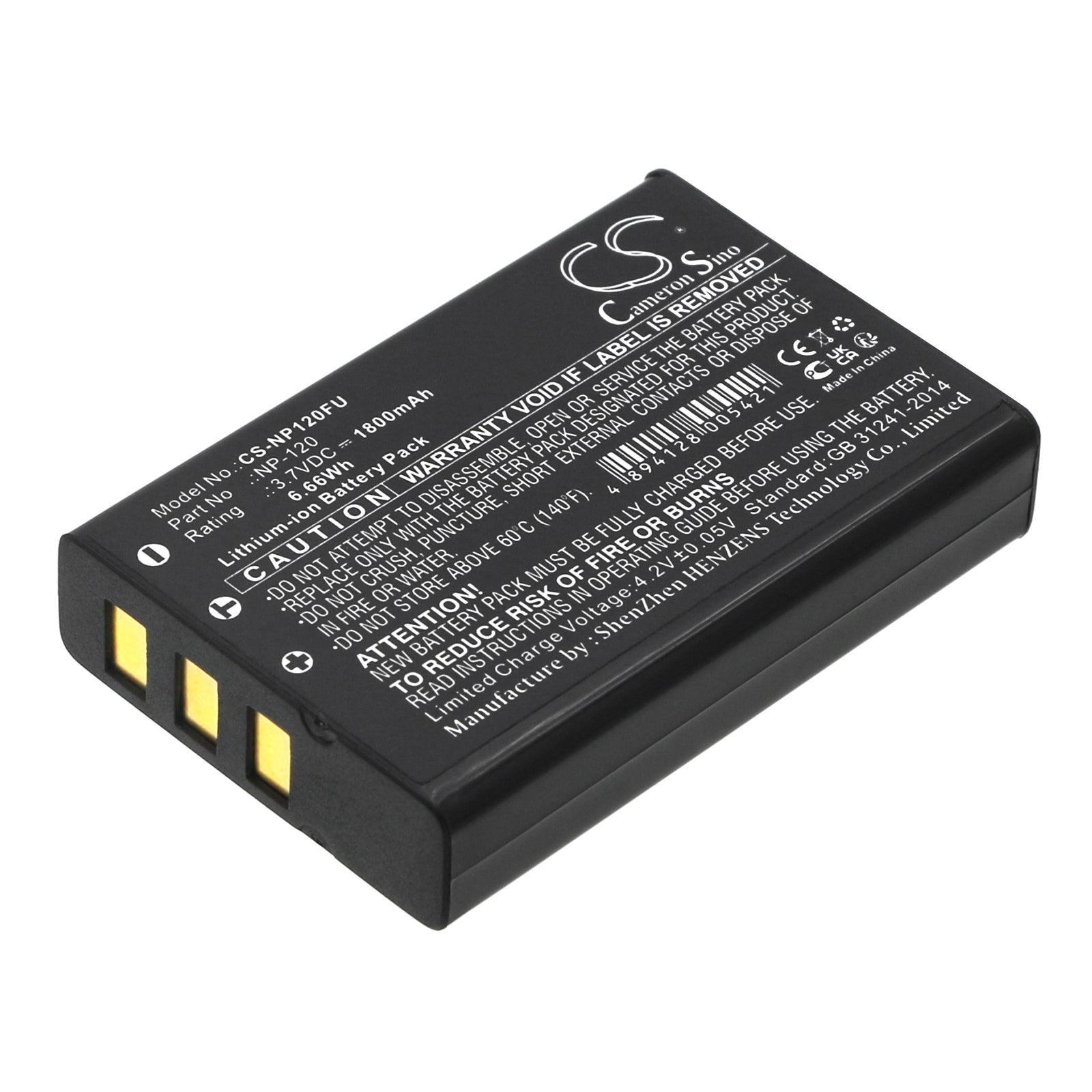 Volts: 3.7V, | Capacity: 1800mAh / 6.66Wh;