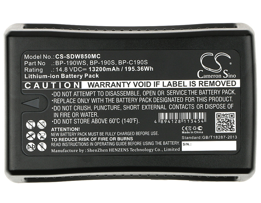 Battery Specification:Volts: 14.8V, | Capacity: 13200mAh / 195.36Wh; Battery Type: Li-ion; Dimension: 151.00 x 95.80 x 56.90mm;