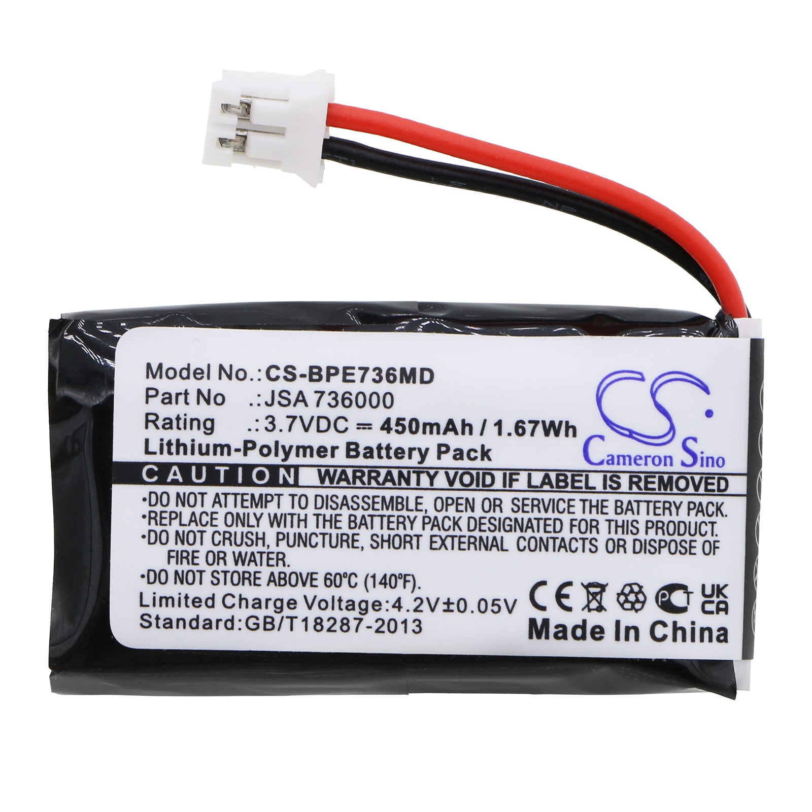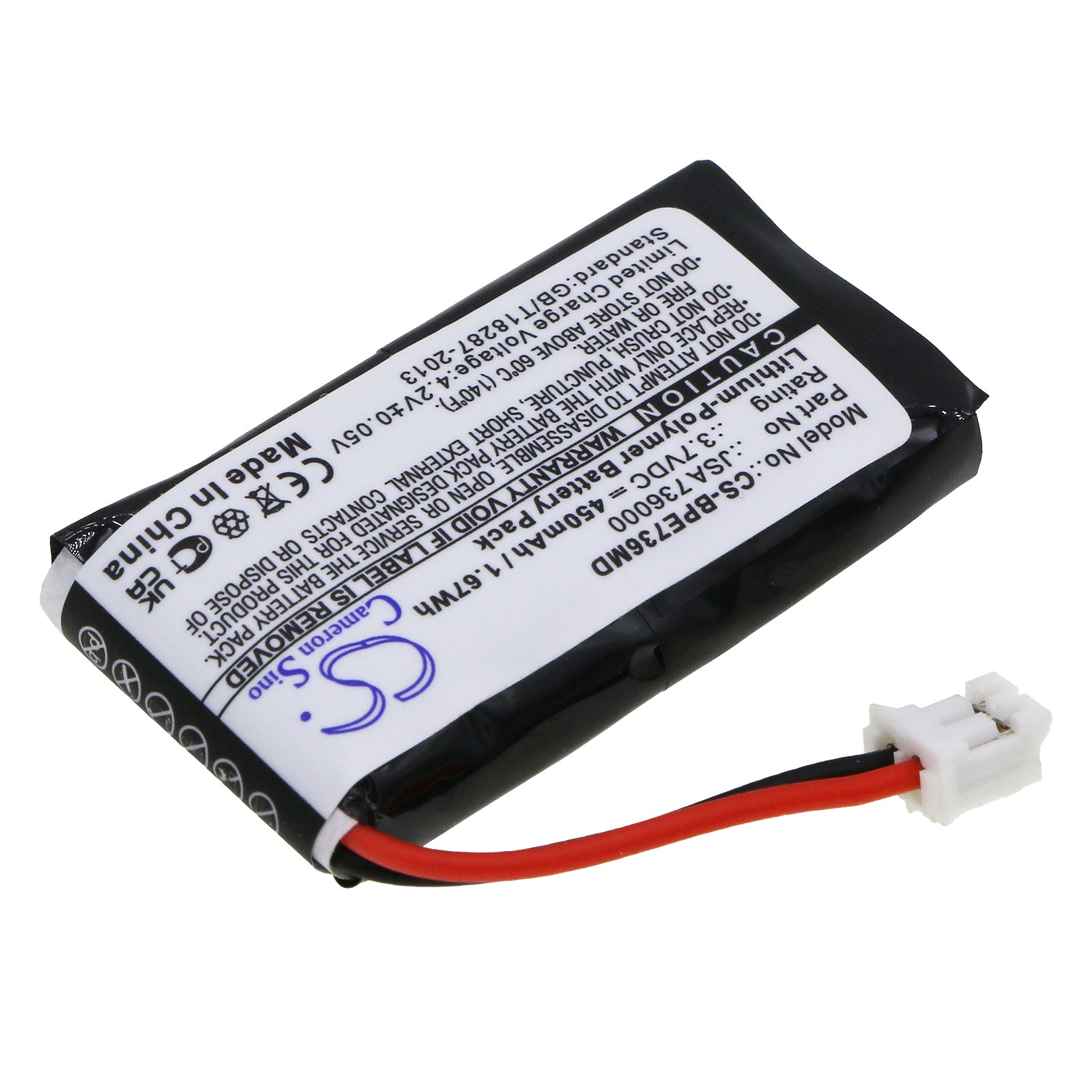 Battery Specification:Volts: 3.7V, | Capacity: 450mAh / 1.67Wh; Battery Type: Li-Polymer; Dimension: 38.80 x 20.80 x 6.90mm;