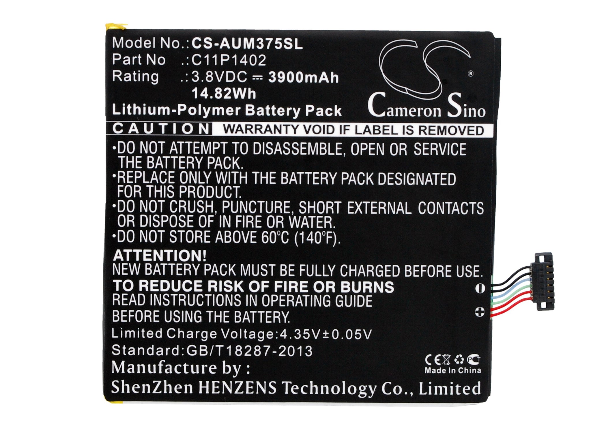• Volts: 3.8V, | Capacity: 3900mAh / 14.82Wh;