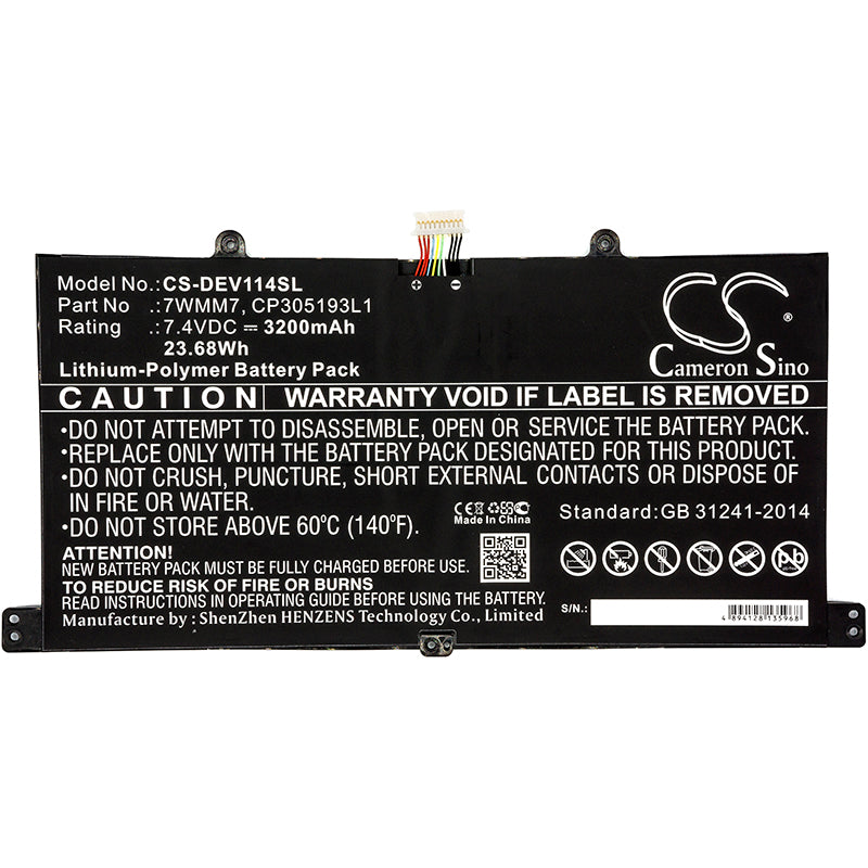 Compatible Battery Number: DELL 7WMM7, CP305193L1, DL011301-PLP22G0,
