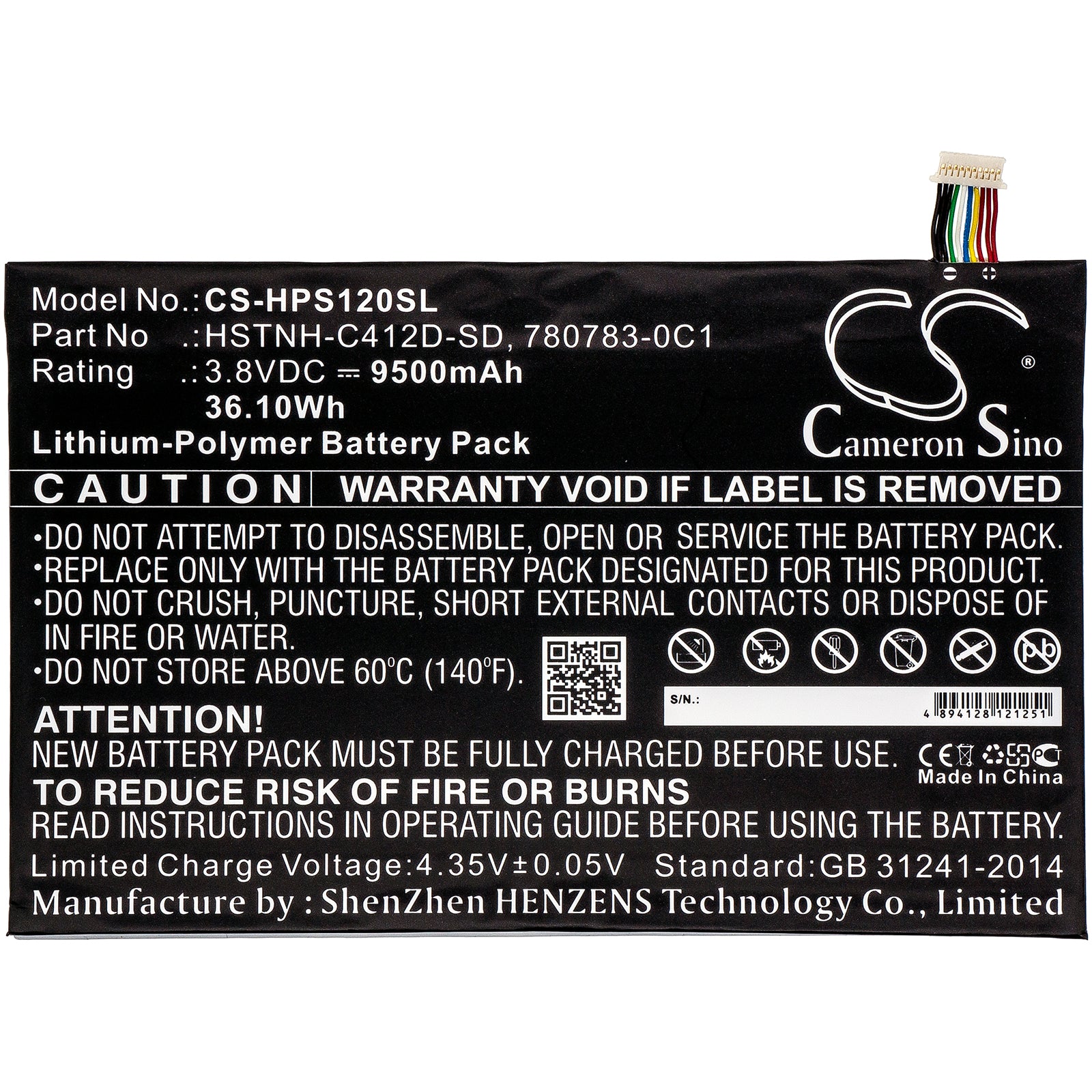 • Volts: 3.8V, | Capacity: 9500mAh / 36.10Wh;