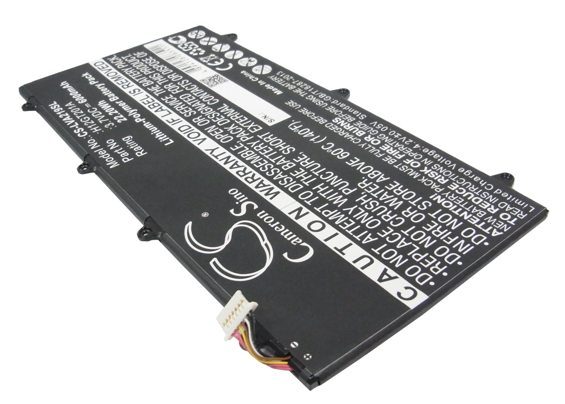 Battery Specification:Volts: 3.7V, | Capacity: 6000mAh / 22.20Wh; Battery Type: Li-Polymer; Dimension: 189.86 x 107.04 x 3.61mm;