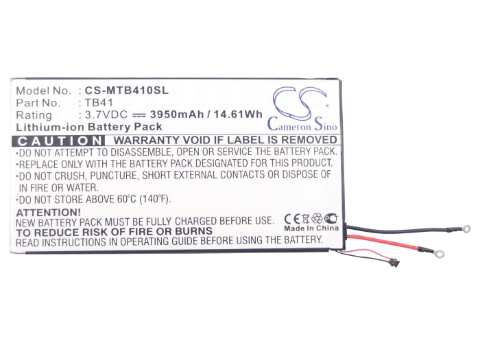 Battery Specification:Volts: 3.7V, | Capacity: 3950mAh / 14.62Wh; Battery Type: Li-Polymer; Dimension: 125.25 x 68.99 x 3.43mm;
