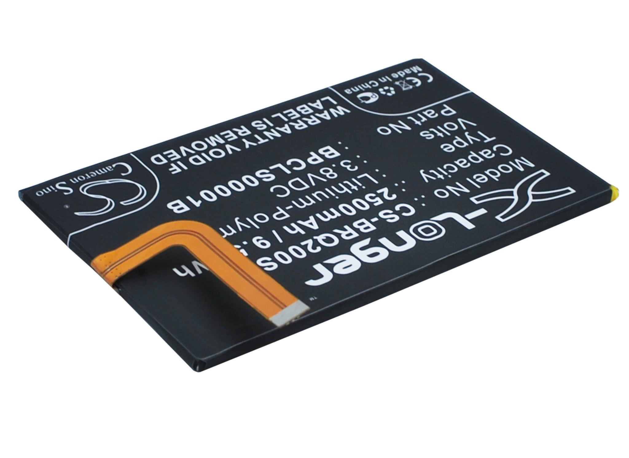 • Volts: 3.8V, | Capacity: 2500mAh / 9.50Wh;