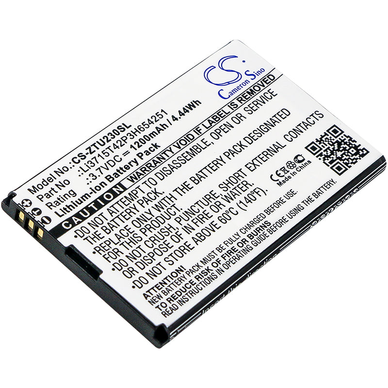 Battery Specification:Volts: 3.7V, | Capacity: 1200mAh / 4.44Wh; Battery Type: Li-ion; Dimension: 64.85 x 42.15 x 4.70mm;