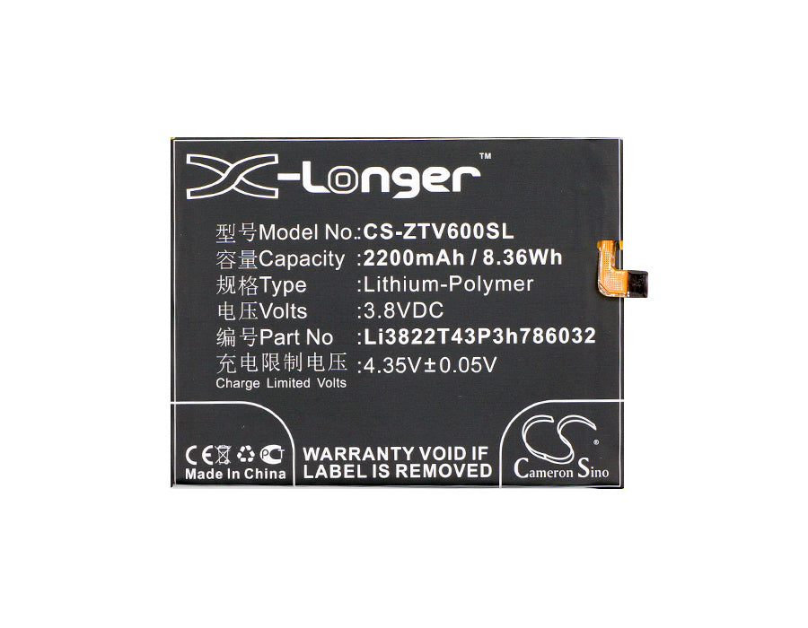 Battery Specification:Volts: 3.8V, | Capacity: 2200mAh / 8.36Wh; Battery Type: Li-Polymer; Dimension: 76.50 x 59.80 x 3.00mm;
