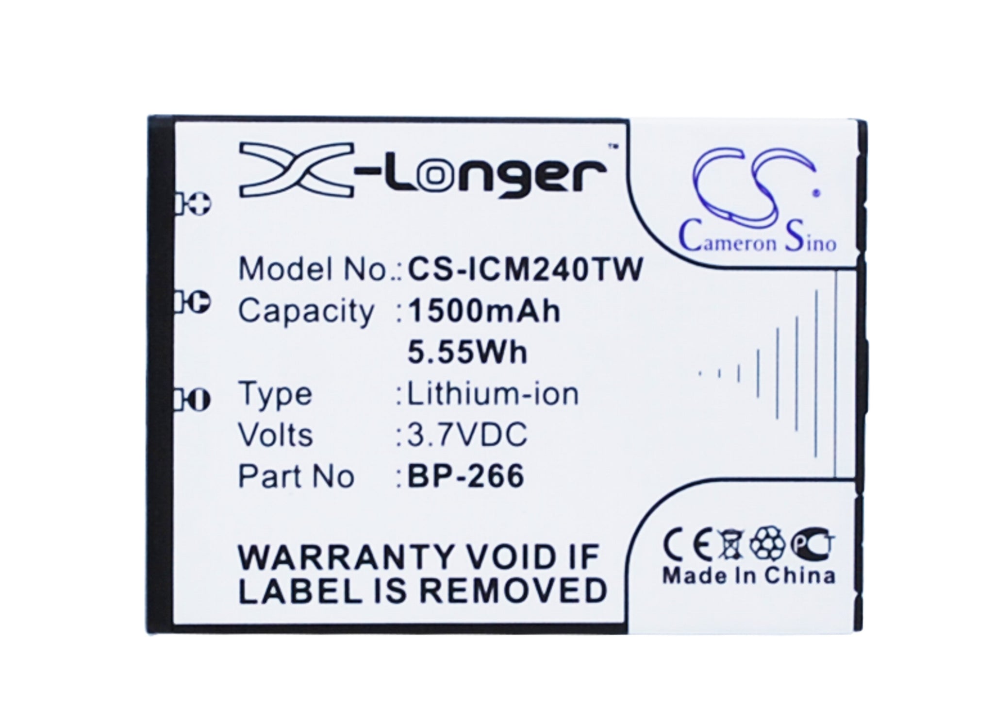 Volts: 3.7V, | Capacity: 1500mAh / 5.55Wh;Battery Type: Li-ion;Dimension: 55.55 x 40.09 x 8.70mm;