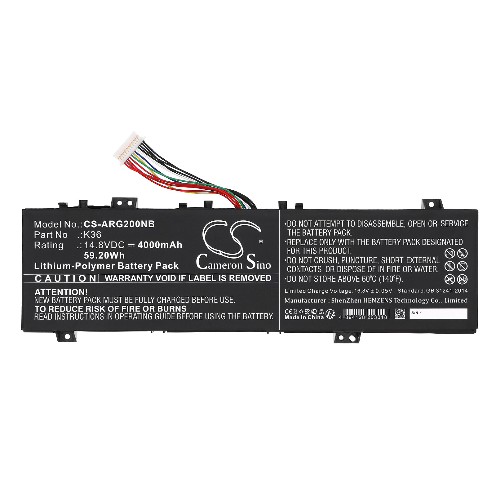 • Volts: 14.8V, | Capacity: 4000mAh / 59.20Wh;