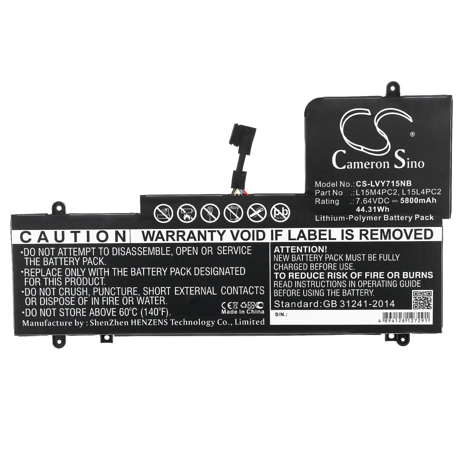 Compatible Battery Number: Lenovo 5B10K90778, 5B10K90802, L15L4PC2, L15M4PC2,
