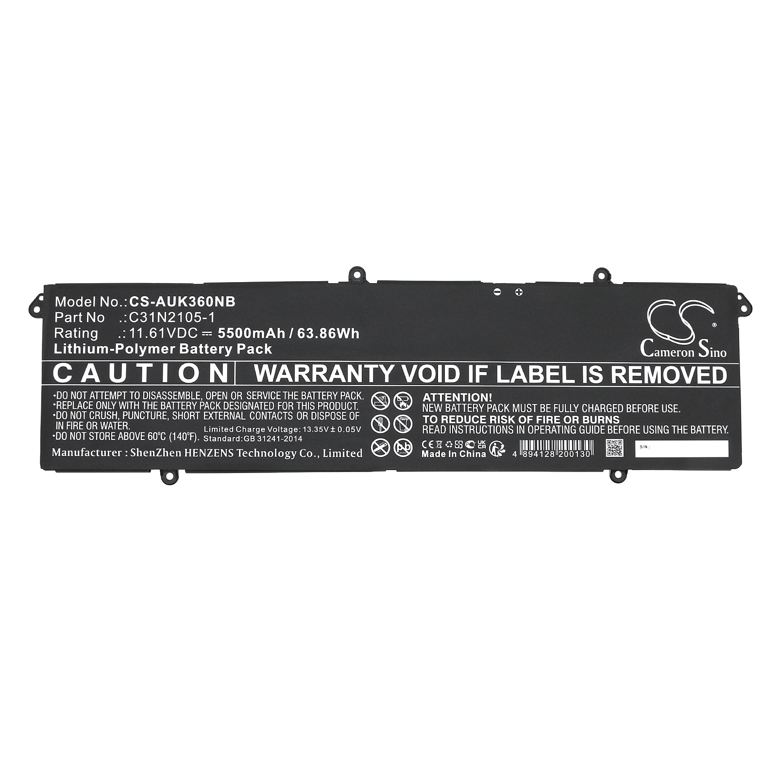 • Volts: 11.61V, | Capacity: 5500mAh / 63.86Wh;