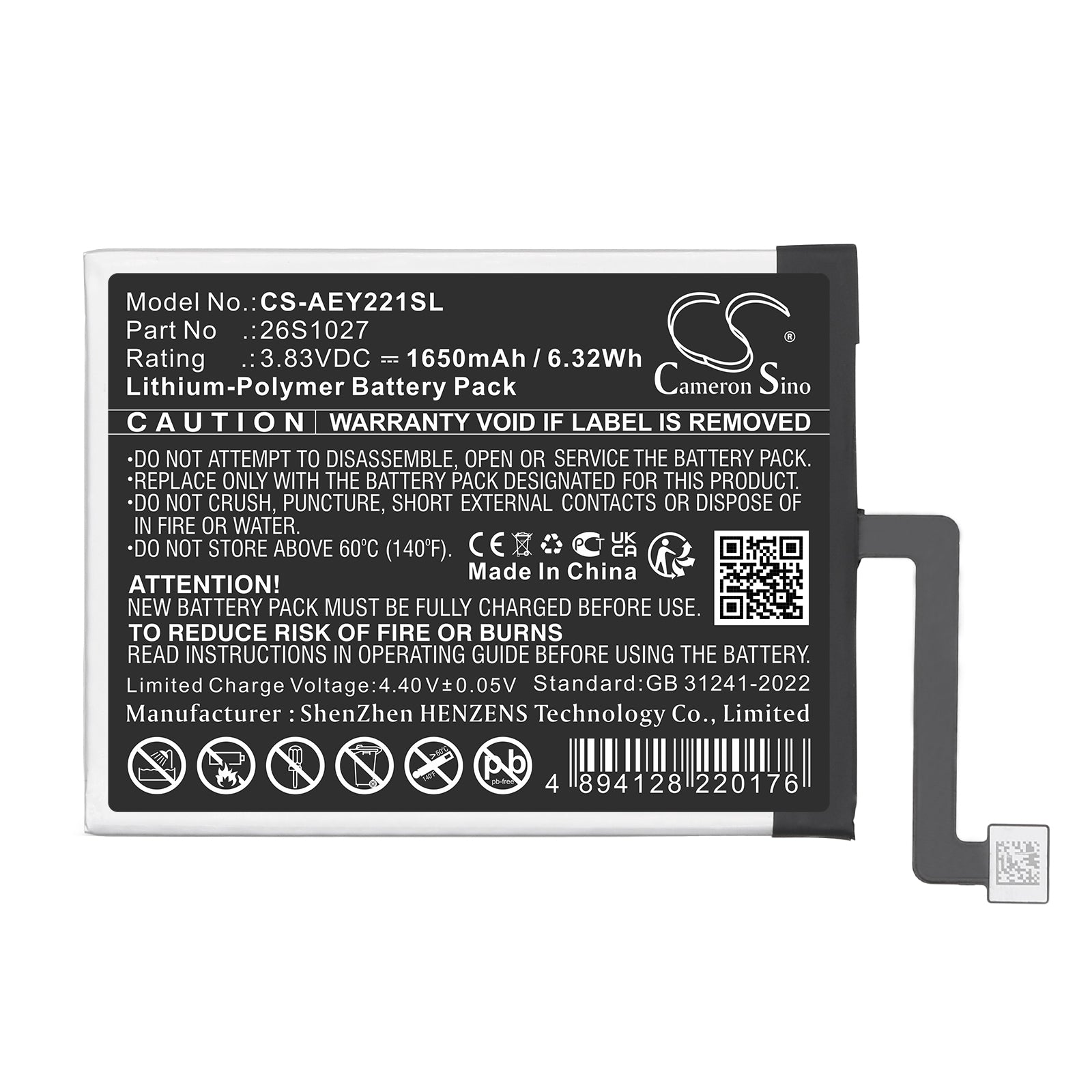• Volts: 3.83V, | Capacity: 1650mAh / 6.32Wh;