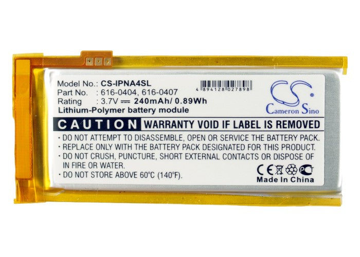 Battery For Apple iPod Nano 4th 16GB, iPod Nano 4th 4GB, iPod Nano 4th 8GB, 616-0405, 616-0407,