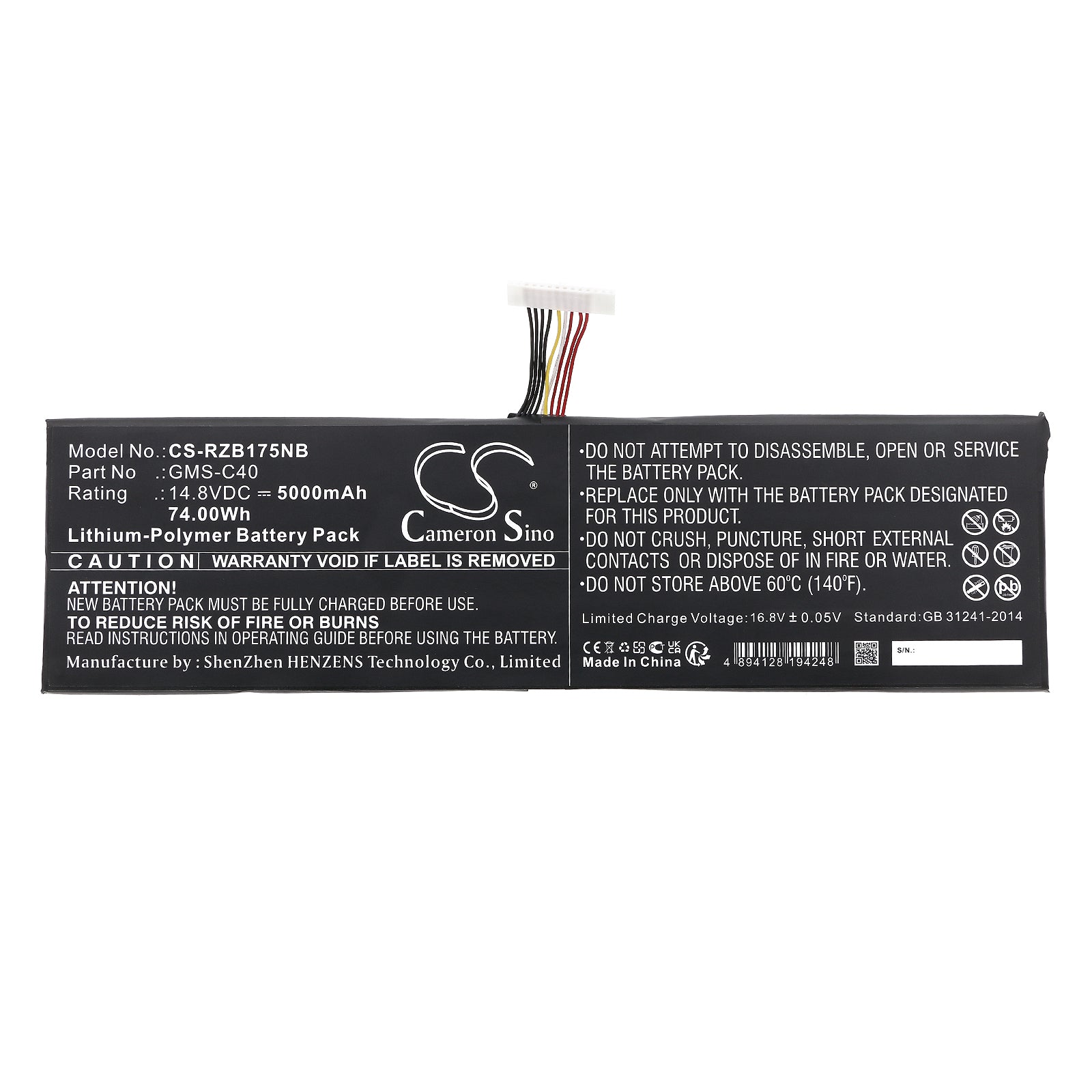 • Volts: 14.8V, | Capacity: 5000mAh / 74.00Wh;