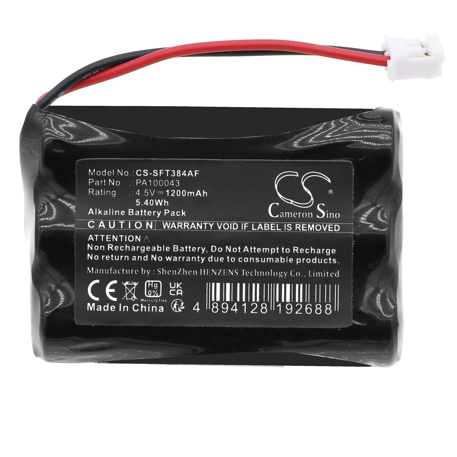 Battery Specification:Volts: 4.5V, | Capacity: 1200mAh / 5.40Wh; Battery Type: Alkaline; Dimension: 46.20 x 31.50 x 10.70mm;
